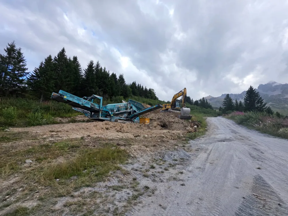 Votre terrassier à Fréjus a réalisé suite à la demande d'un client et afin de parfaire les pistes à COURCHEVEL, nous avons utilisé une parcelle naturelle pour cribler la terre et les cailloux.